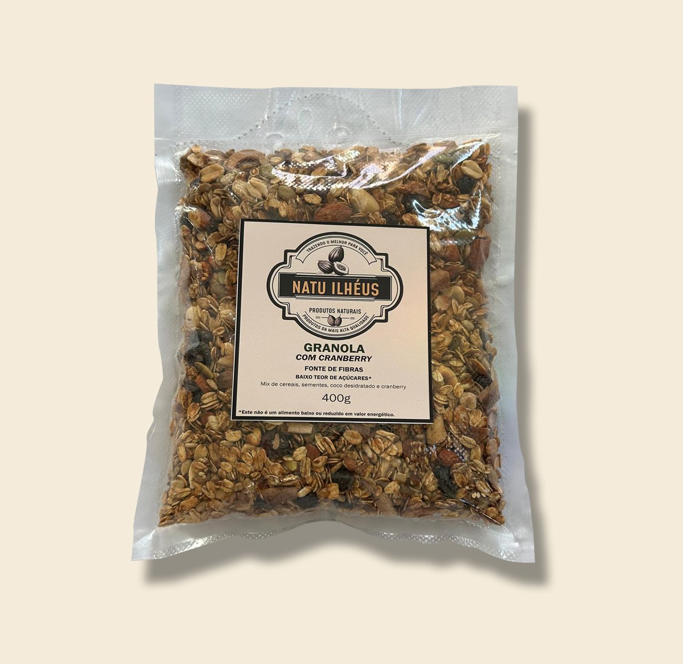 Possui o mesmo cuidado, qualidade e ingredientes da granola tradicional, com a substituição da uva-passa por cranberry, para agradar o paladar dos nossos consumidores e agregar os valores nutricionais e propriedades da cranberry.